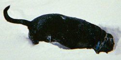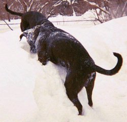 but one of the dogs who was reluctant to venture out into the storm struggled